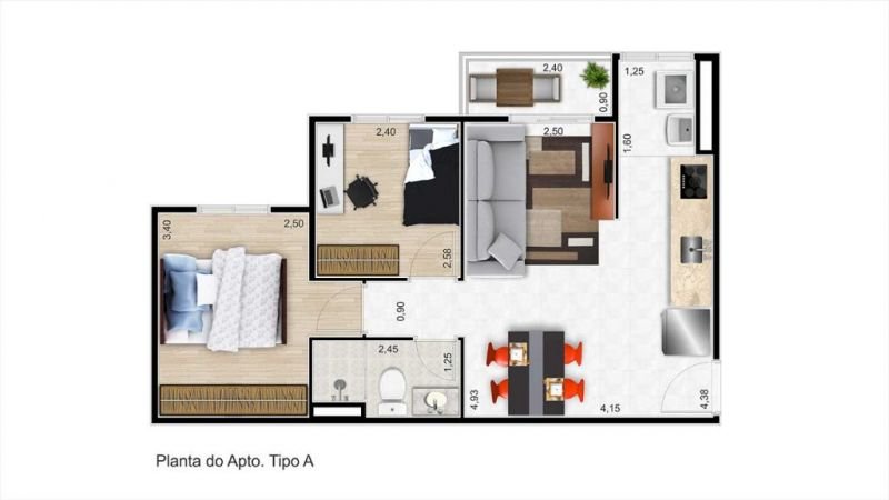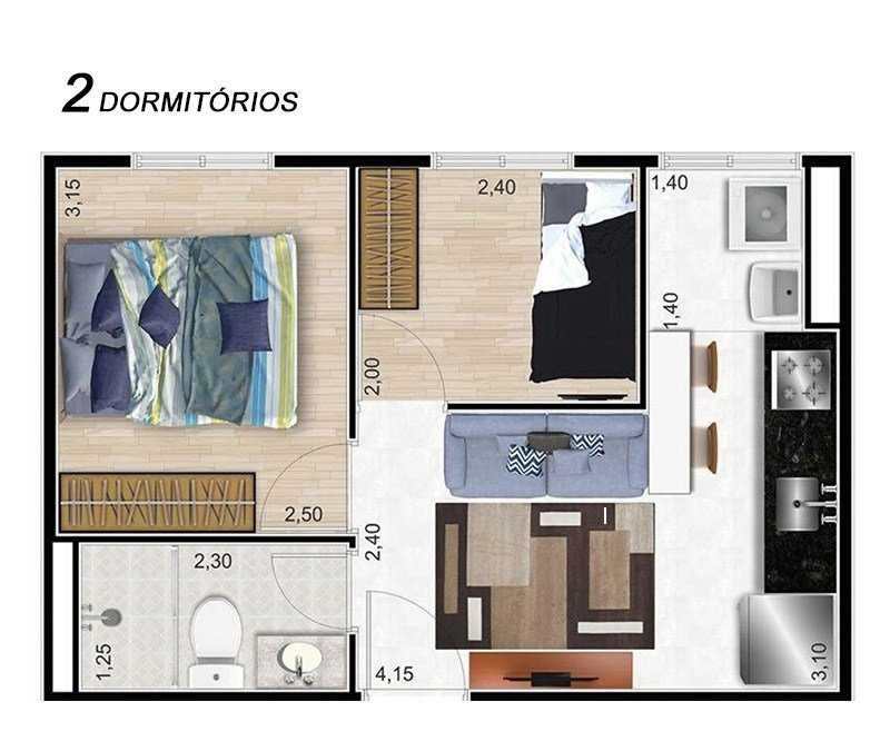 50m², 2 quartos com sacada, vaga coberta, área de serviço, em média *R$ 252.000,00*