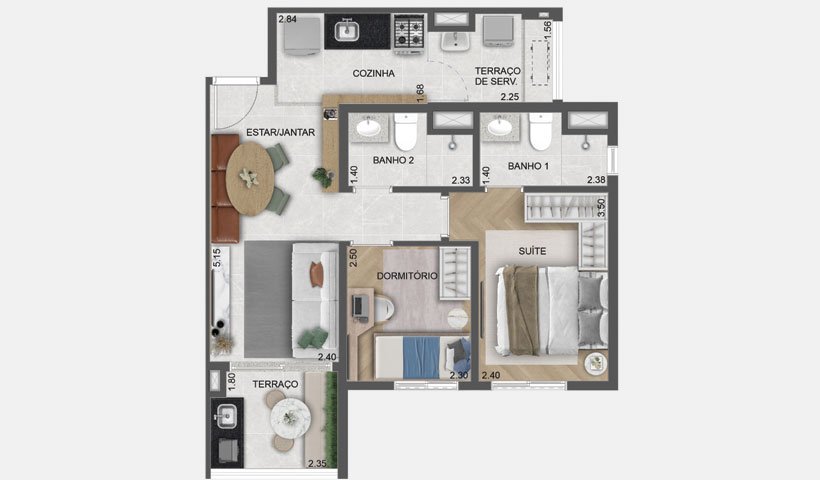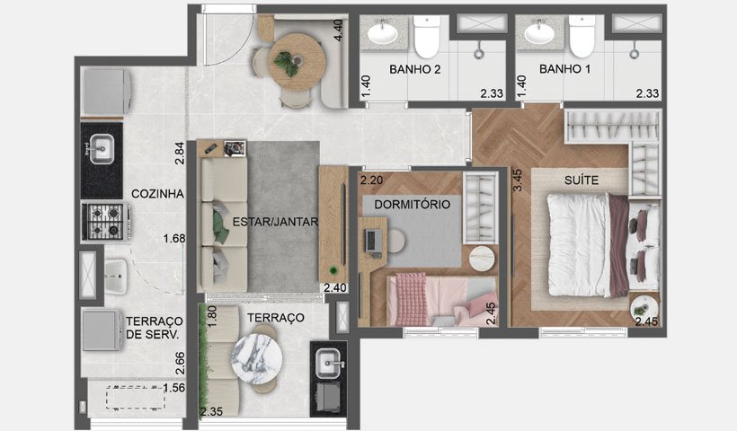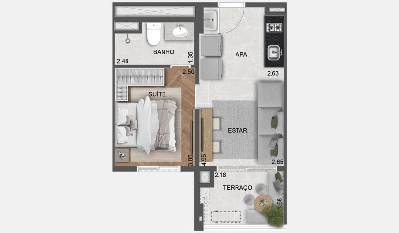 Área Total: 53 m² (R$ 11.085/m²)Área Privativa: 53 m²