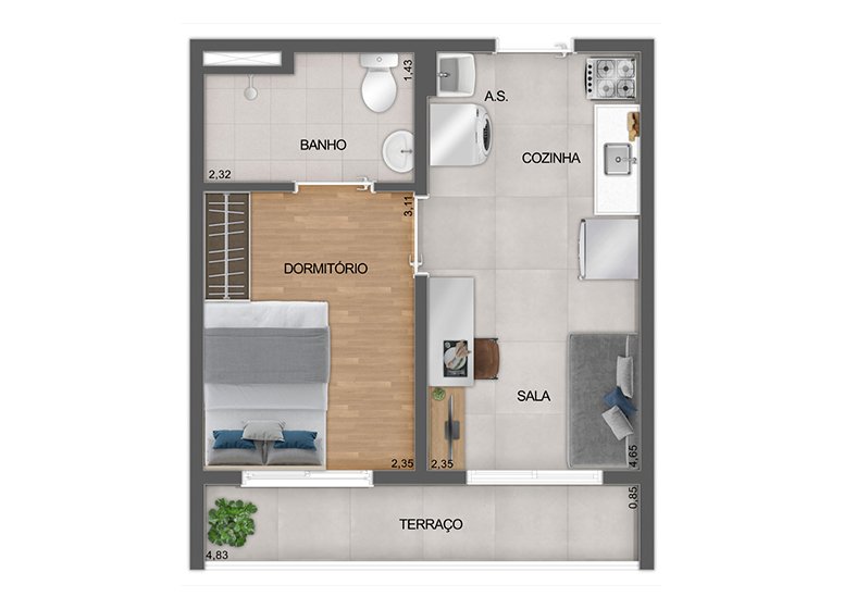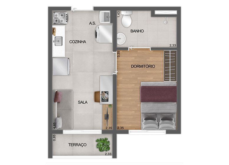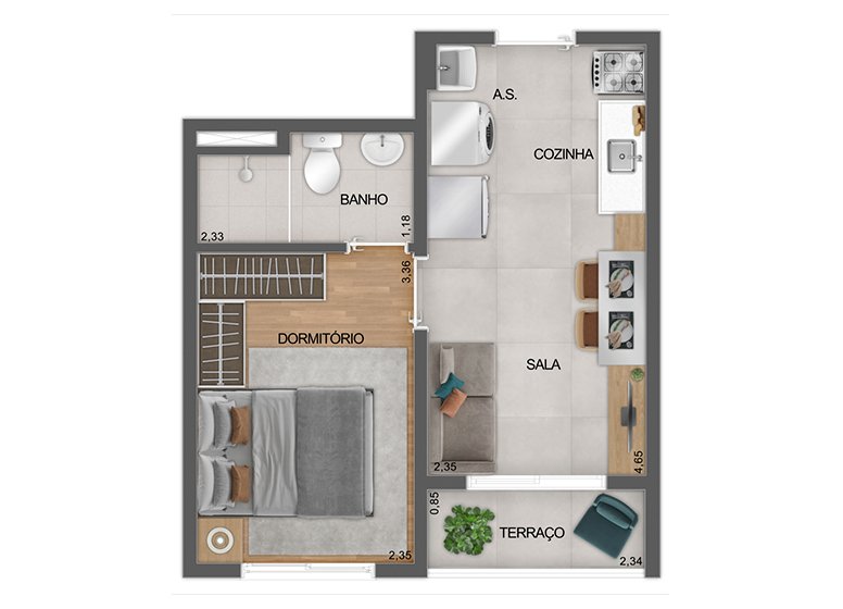 - Dormitórios: 1