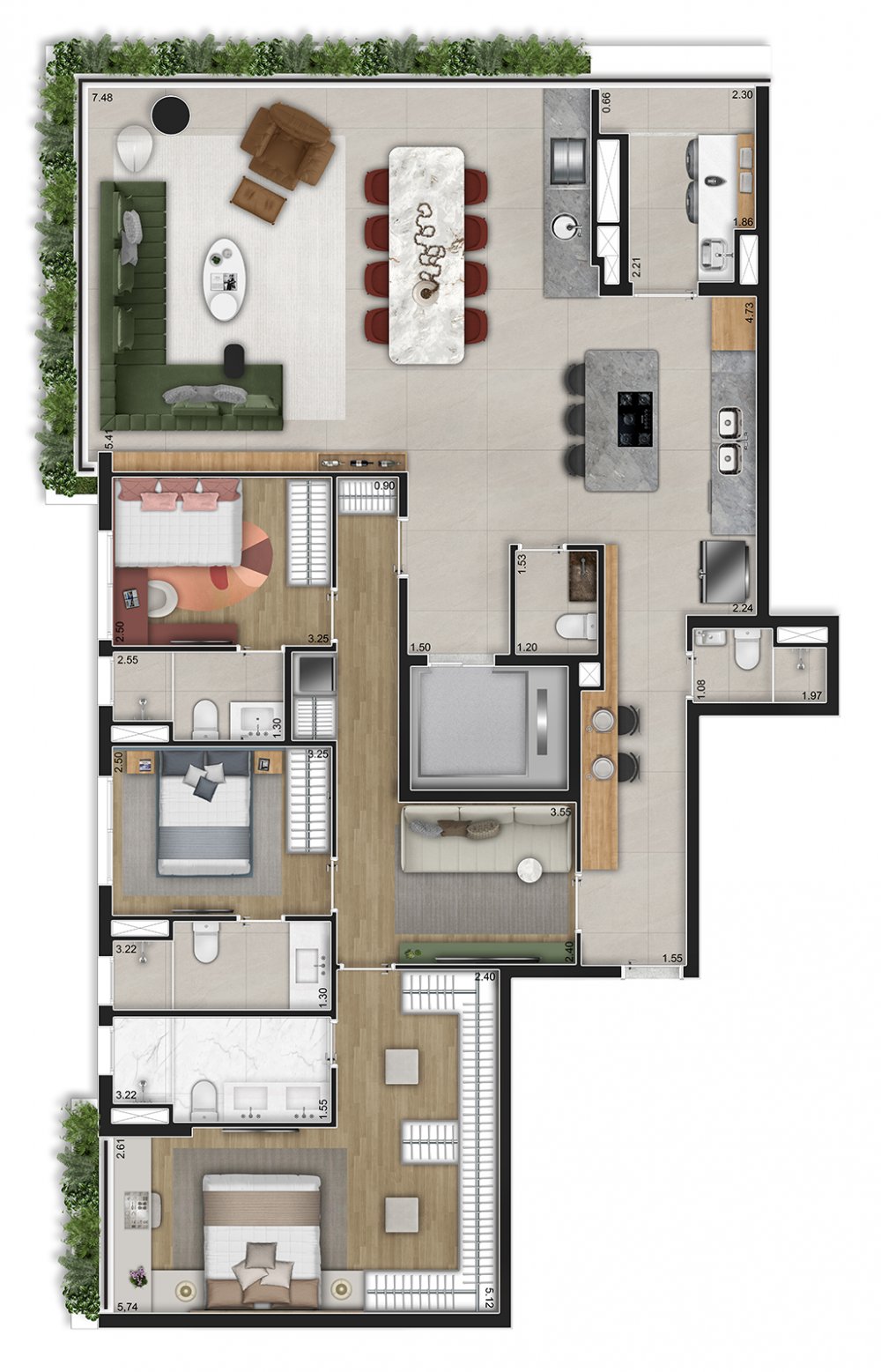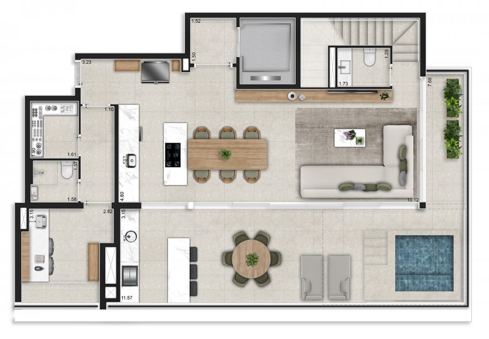 Aire Alto de Pinheiros, o mais novo sucesso da linha LifeStyle Boutique by Trisul localizado em um bairro para respirar todo o verde durante o dia e toda badalação à noite. Conte com o que há de melhor em dois bairros: Vila Madalena e Alto de Pinheiros. Uma das regiões de São Paulo que ainda preserva sua vocação residencial, marcada por suas ruas tranquilas e arborizadas, e bem ao lado de onde a vida acontece. Uma região de casas e condomínios fechados, com uma excelente infraestrutura ao seu dispor e possibilidades infinitas de diversão, entretenimento e gastronomia para os seus sentidos. Além das ruas arborizadas, praças e parques, conte com toda a conveniência de serviços, lojas, bares e restaurantes por perto. Seus apartamentos são modernos e confortáveis, com opções de plantas que variam de 123 a 167m², 3 e 2 suítes + Duplex e 2 a 3 vagas de garagem. O empreendimento conta com lazer completo para toda a família, proporcionando a tranquilidade que você merece, em espaços exclusivos: Hall de Entrada, Coworking, Central Delivery, Espaço para Mini Market, Bicicletário, Quadra Recreativa Coberta, Quadra de Tênis, Salão de Festas e Gourmet, Fitness, Fitness Externo, Espaço Descanso, Sala de Massagem, Sauna Seca, Brinquedoteca, Espaço Pet, Playground, Churrasqueira com Forno de Pizza, Piscina Infantil Coberta, Piscina Descoberta Adulto com Deck Molhado e Solário. Aire Alto de Pinheiros, no seu tempo para ver, respirar e viver!