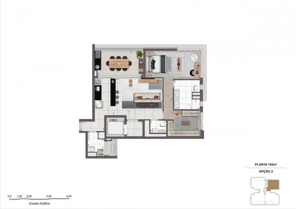 Área Total: 102 m² (R$ 33.707/m²)Área Privativa: 102 m²