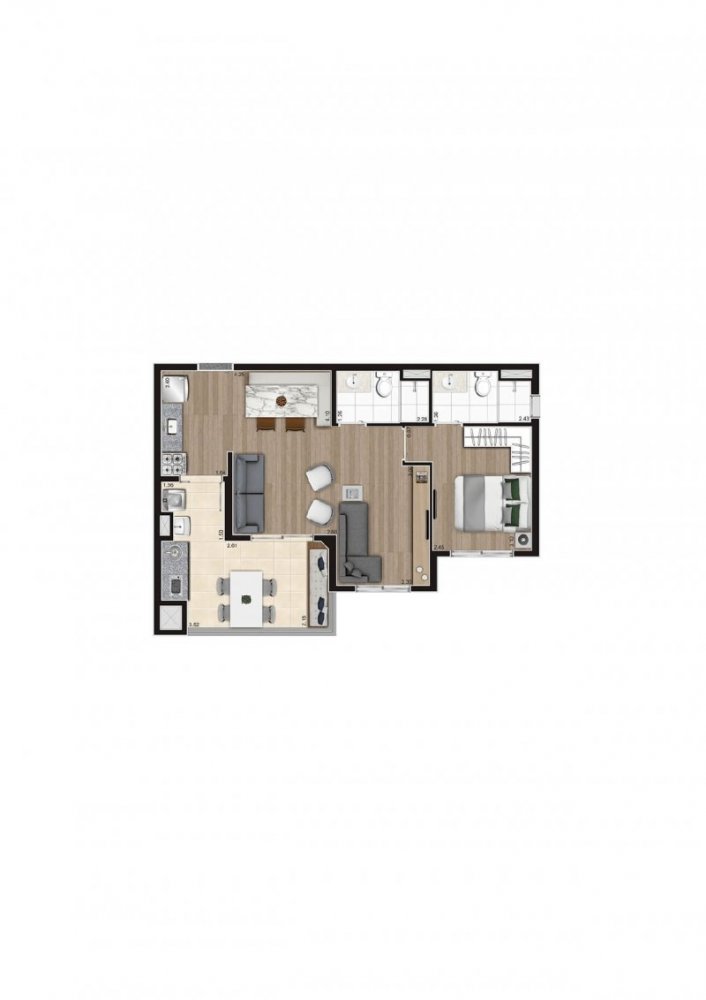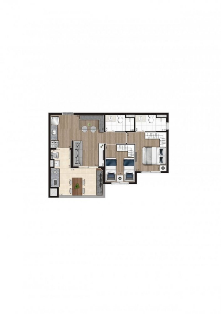 Os apartamentos do Trot Vila Maria, tem 56m² com 2 dormitórios e serão entregues com churrasqueira na sacada. Os apartamentos também terão opção de sala ampliada com 1 suíte.
